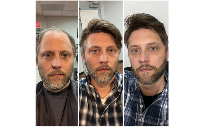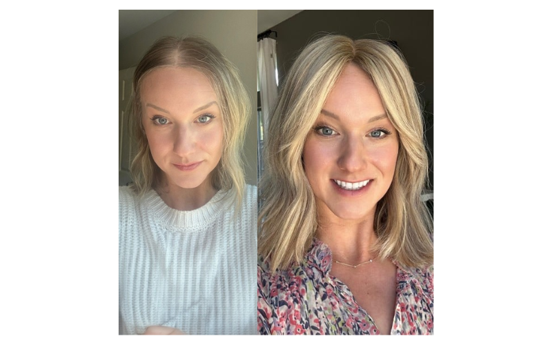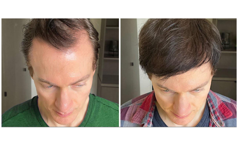 "Ez a spray tényleg hatékony! Alopeciában, PCOS-ban és szülés utáni hajhullásban szenvedek – a hajvonalam eltűnt. Néhány hétnyi rendszertelen használat után új haj kezdett nőni! Most, néhány hónap elteltével, a hajvonalam újra teljes. Végre láthatom azt a hosszúságot, ami a károsodás előtt volt. Nagyon hálás vagyok ezért a termékért!"